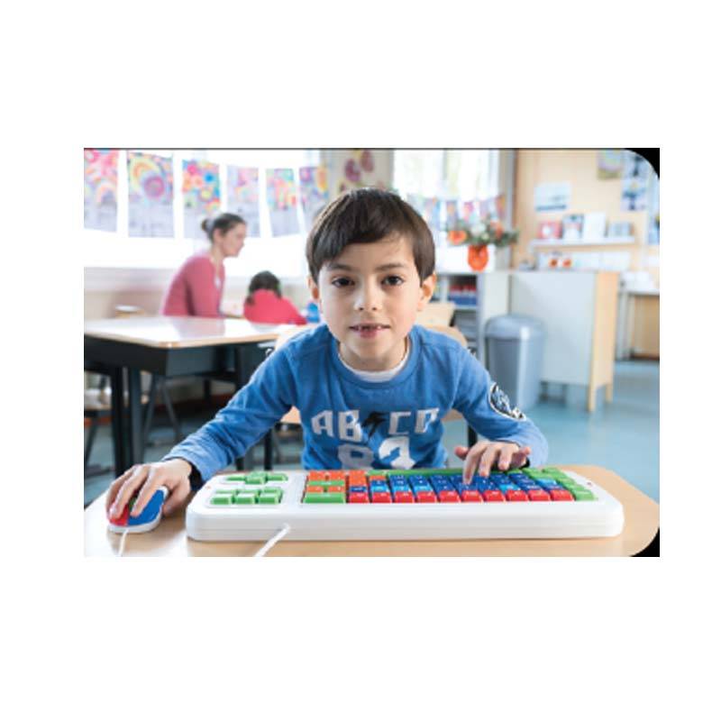 Die Clevy Tastatur wurde für Kinder entwickelt. Sie hat fröhliche Farben und extra große (2 x 2 cm) farbige Tasten. Insgesamt verfügt die Tastatur über ein klares, Kinder ansprechendes Design. Dank der sehr deutlichen Buchstaben ist die Clevy eine gute Ergänzung zum Schreibunterricht. Außerdem ist sie solide und robust konstruiert.
