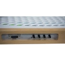 Stabile Konstruktion mit Echtholzrahmen und 6 mm dicker Hartaluminiumplatte, Tastengröße 20 mm, Betätigungsweg der Tasten 1,6 mm, Tastenabstand 25 mm, Tasten ca. 4 mm tief versenkt, zuschaltbare Selbsthaltung der Umschalttasten für