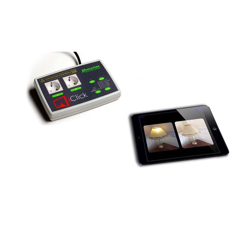 Mit dem neuen iClick und der kostenlosen iClick App von Pretorian können elektrische Geräte vom iPad aus gesteuert werden. Einfach die gewünschten Geräte an den iClick anschließen und vom iPad aus schalten: