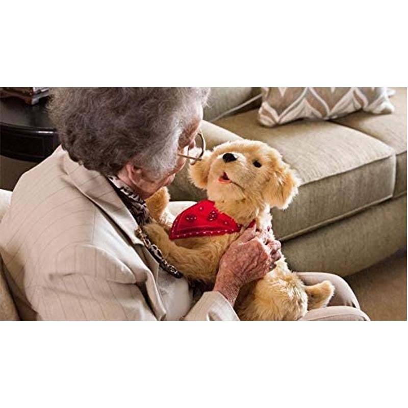 Fühlen Sie den Herzschlag und beruhigen Sie Ihren neuen kuscheligen Begleiter durch das Auflegen Ihrer Hand. Der Hund reagiert durch Sensoren auf Berührung und Streicheln und wendet sich dem Geräusch der Stimme zu und antwortet mit Bellen. (BarkBack(TM) Technologie)