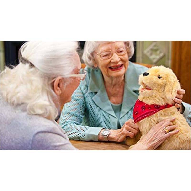 Der Hund wartet auf Streicheleinheiten, bellt und hechelt, öffnet die Augen, wedelt mit dem Schwanz, ...und seinen Herzschlag kann man fühlen. All das bereitet älteren und betagten Menschen Freude und ruft Erinnerungen und positive Gedanken hervor.
