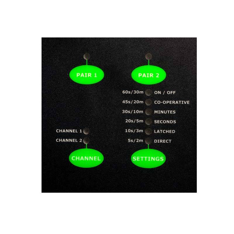 Mehrere Modi: Direktschaltung, Ein- Aus, Einschalten für Sekunden bzw. Minuten, Co-operativ Modus.