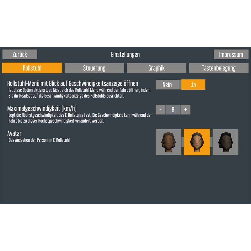 WheelSim Home ist ein virtueller E-Rollstuhlsimulator, der Personen mit Beeinträchtigung jeden Alters das Erlernen und Trainieren der E-Rollstuhlsteuerung in einer realitätsnahen Simulation ermöglicht. WheelSim Home richtet sich an Einzelpersonen und ist für den Einsatz zu Hause gedacht.